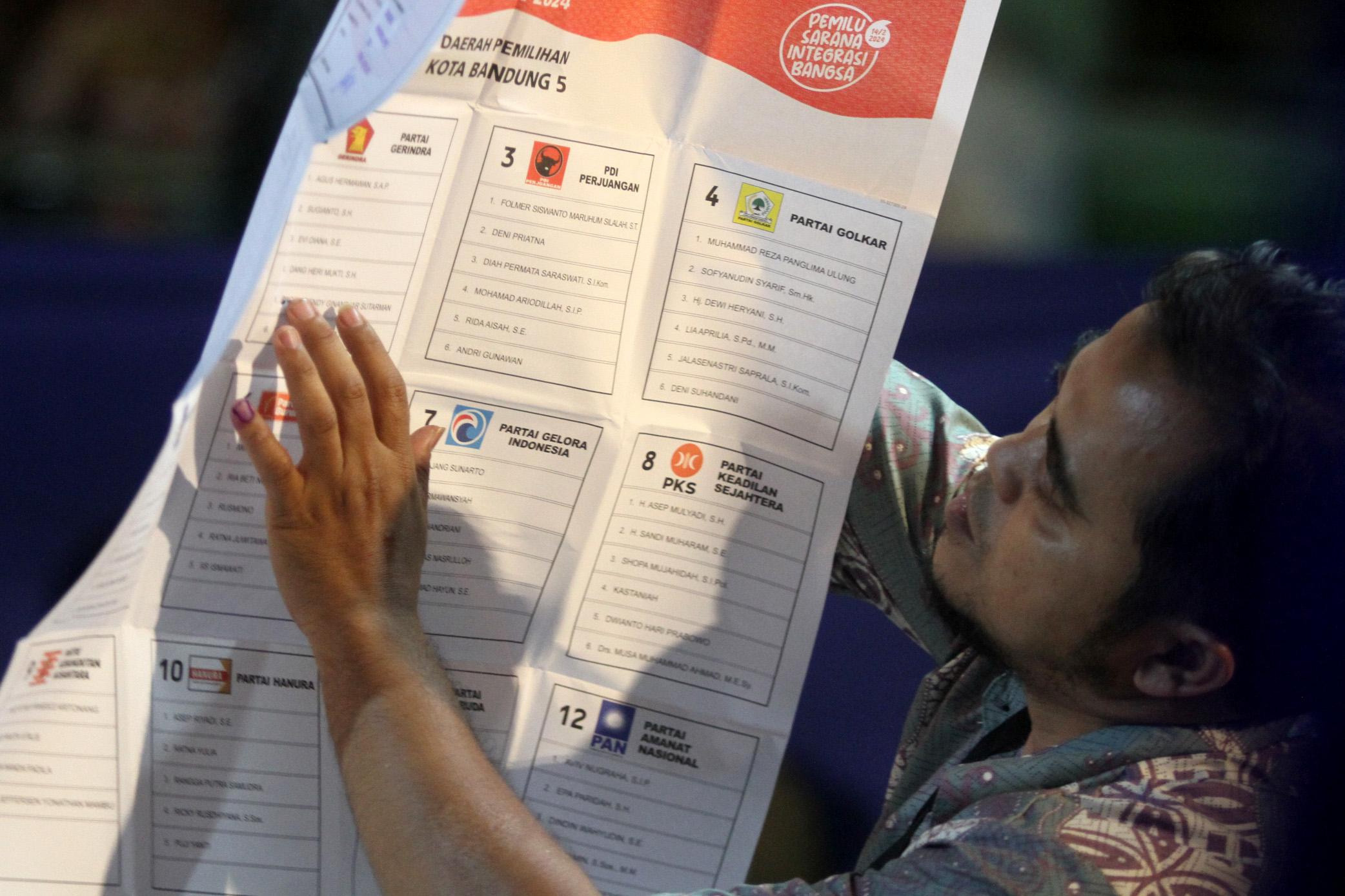 BANDUNG, WWW.PASJABAR.COM — Petugas KPPS melakukan penghitungan surat suara DPRD Kota Bandung pada Pemilu 2024 di TPS 023, RT. 03 RW. 05, Kel. Pasirluyu, Kec. Regol, Kota Bandung, Kamis (15/2/2024) dini hari. Penghitungan surat suara Presiden/Wakil Presiden, DPD, DPR RI dan DPRD provinsi dan DPRD Kabupaten/Kota berlangsung hingga dini hari. (Eci)