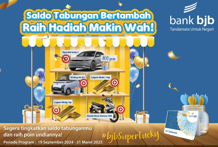 Program bjb Super Lucky ini tidak hanya memberikan kesempatan bagi nasabah untuk mendapatkan hadiah, tetapi juga mendorong untuk lebih aktif dalam mengelola keuangan.