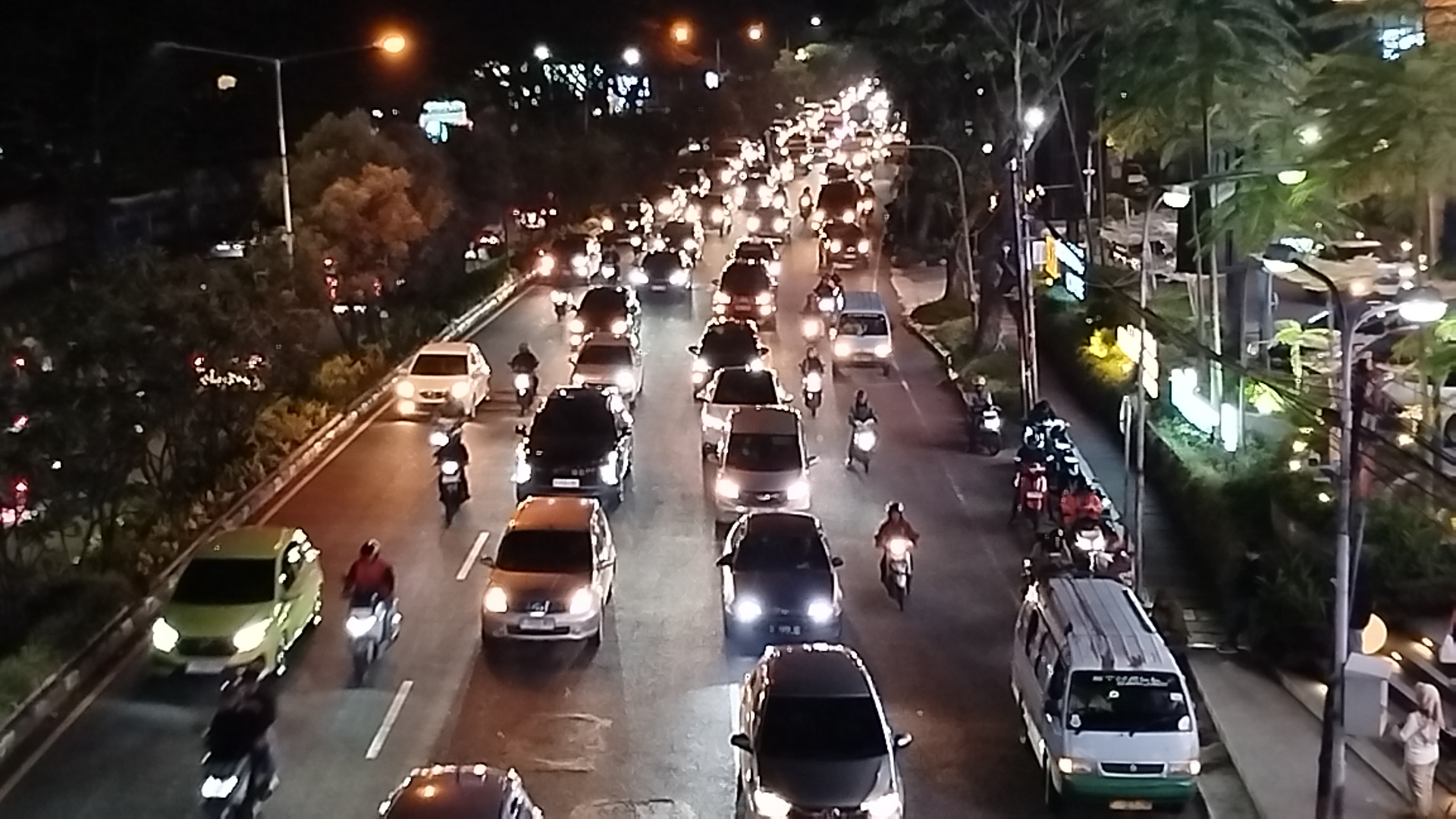 Kepadatan kendaraan terjadi secara bertahap sejak sore hari dan memuncak saat malam,