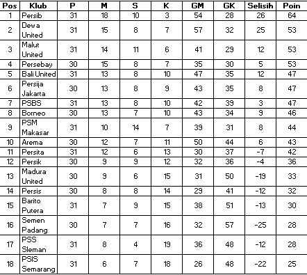 Berikut adalah tabel klasemen Liga 1 2024/2025 terbaru hingga pekan ke-31: