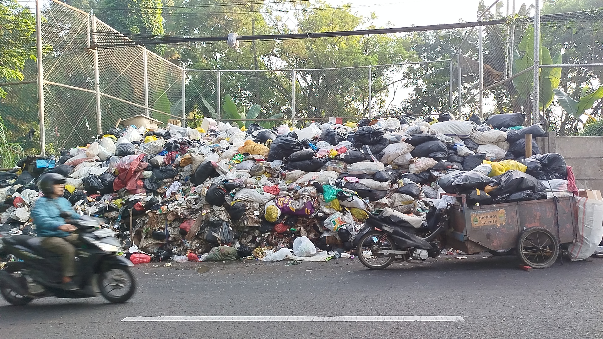 Tumpukan sampah juga memengaruhi arus lalu lintas karena sebagian badan jalan tertutup sampah rumah tangga yang menumpuk.