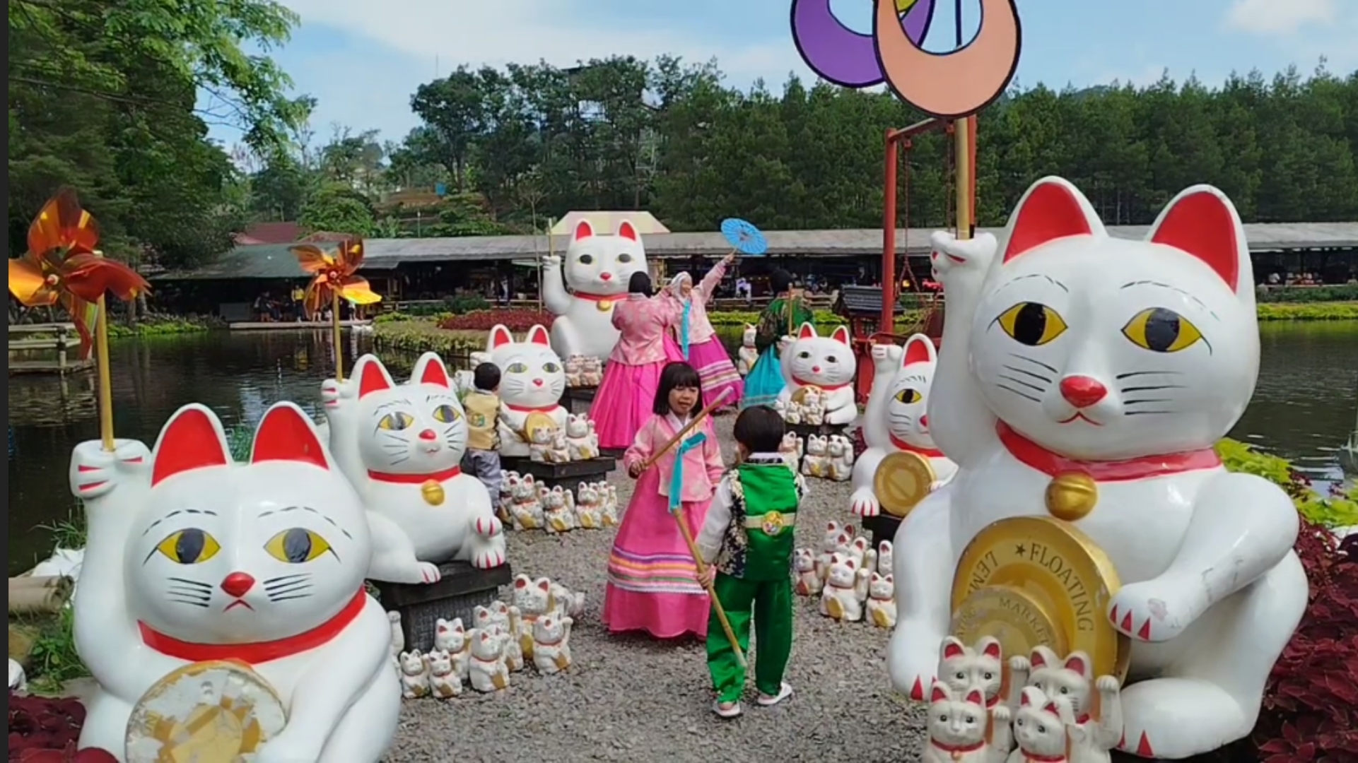 Bangunan bergaya Jepang lengkap dengan jembatan kayu, lentera merah, dan gerbang torii menciptakan latar yang Instagramable. Pengunjung dapat menyewa kostum kimono atau yukata seharga Rp100 ribu. Untuk berfoto-foto di sudut-sudut menarik lokasi ini.