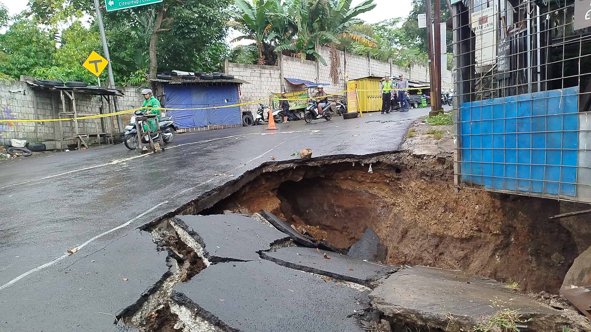 Petugas kepolisian dari Polres Cimahi langsung turun ke lokasi dan memasang garis polisi guna mencegah pengendara melintasi area yang terdampak. Langkah ini dilakukan untuk menghindari kecelakaan serta memastikan keselamatan pengguna jalan.