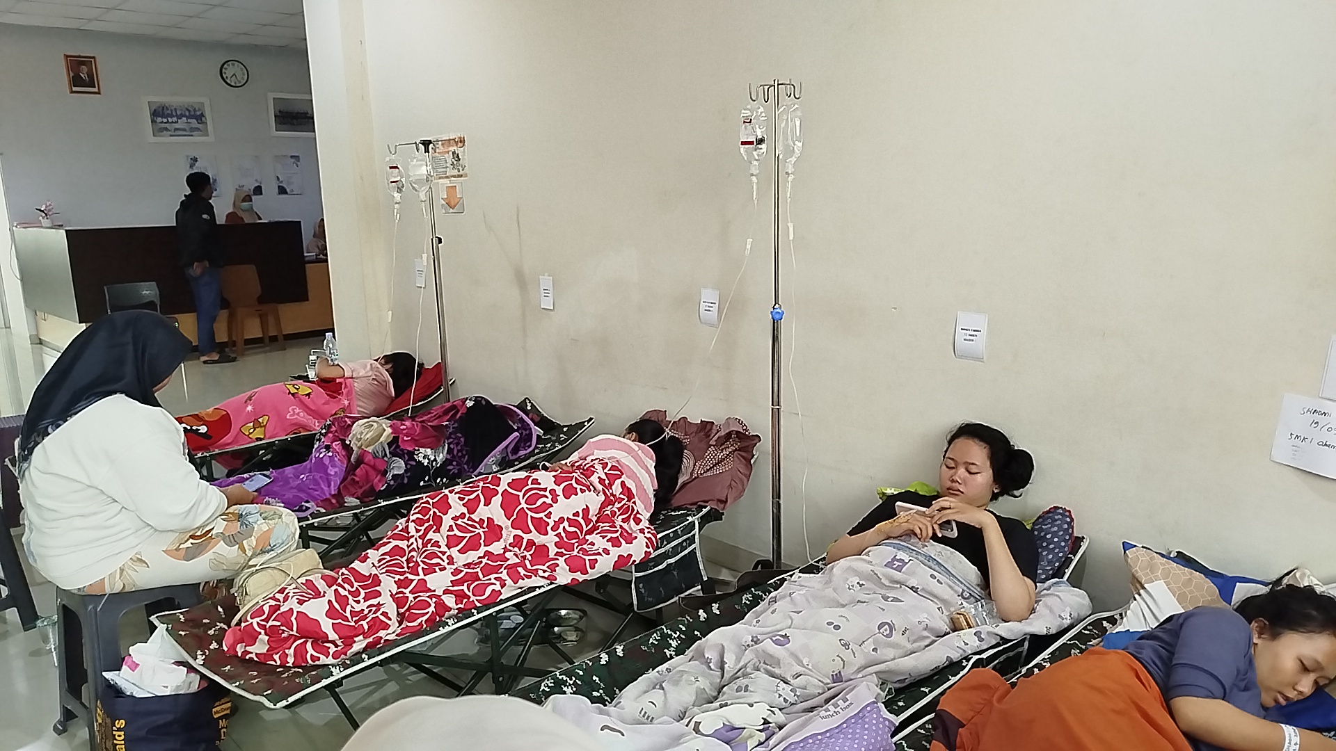 Kondisi para korban terlihat lemas dengan infus terpasang.