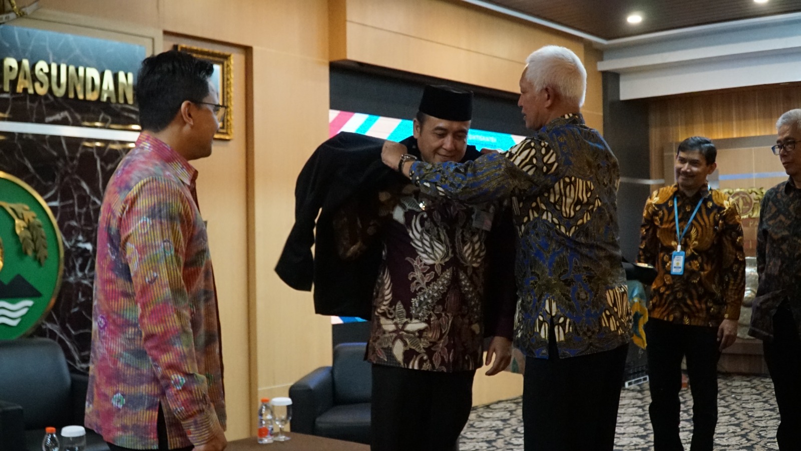 Direktur Pascasarjana Unpas Prof. Dr. H. Bambang Heru Purwanto, MS., saat Pengukuhan Mahasiswa Baru Tahun Akademik 2025/2026 Semester Ganjil dengan perwakilan mahasiswa baru Dr. H. Erwin, SE., MPd., Sabtu (27/9/2025). (foto: tie/pasjabar)