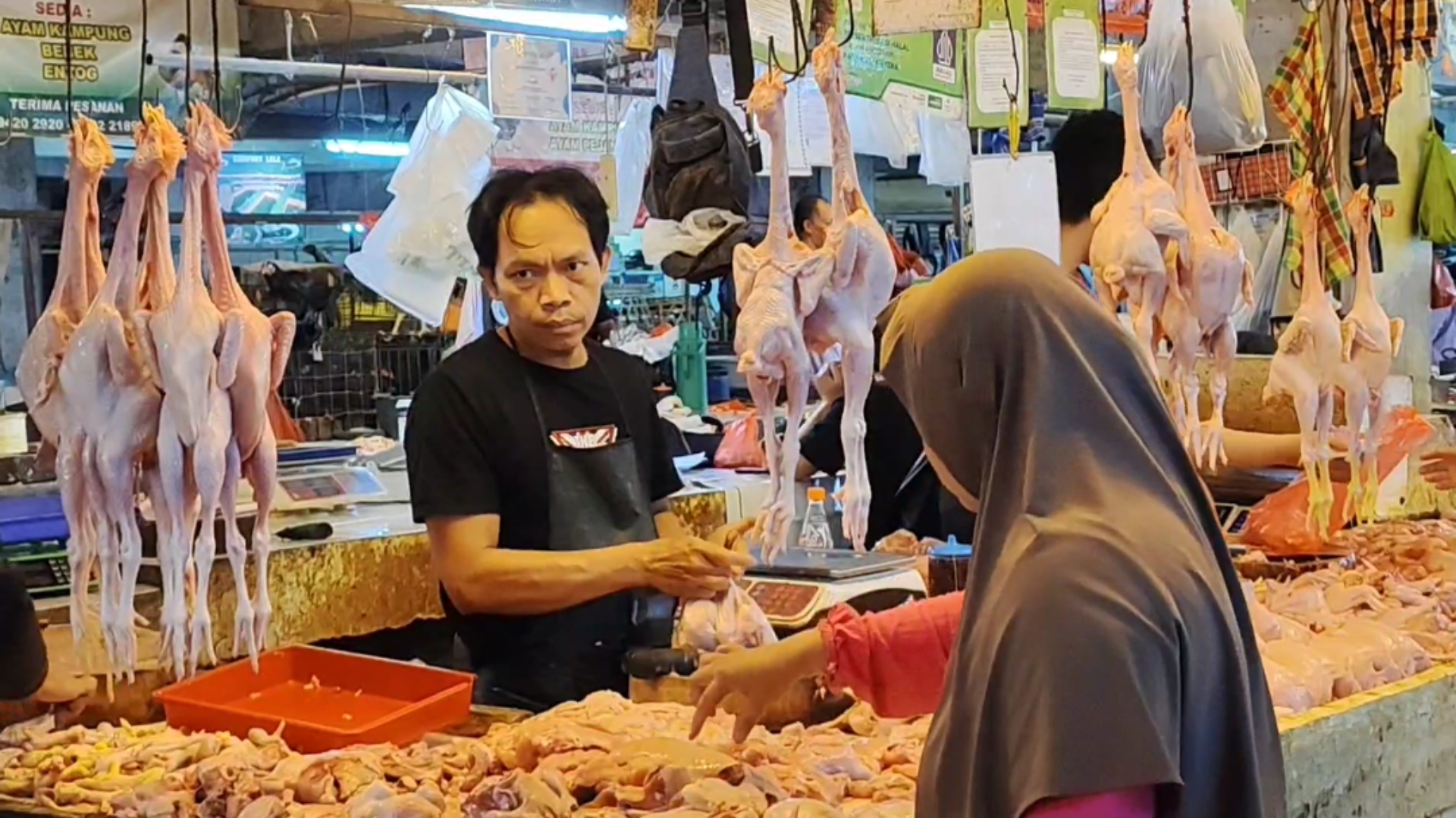 “Biasanya harga stabil, tapi sekarang naik karena pasokan terbatas. Permintaan juga banyak,” ungkap Reno, pedagang ayam potong.