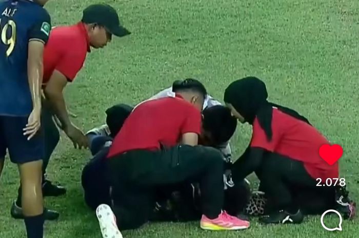Situasi ini membuat laga sempat terhenti dan ambulans langsung bergerak cepat untuk memberikan pertolongan pertama.