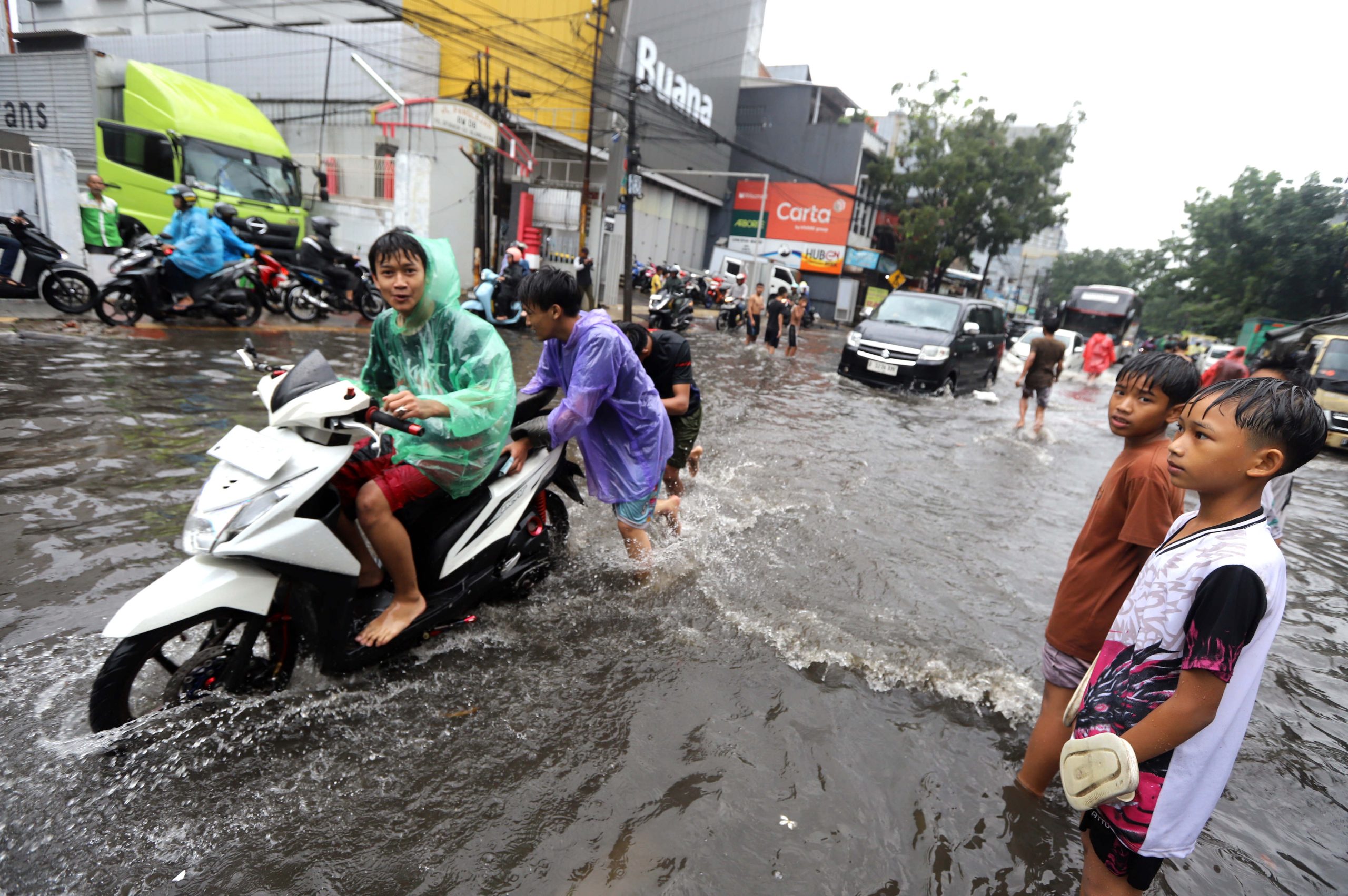 Pantauan di lapangan, genangan air mencapai setinggi lutut orang dewasa, membuat pengendara sepeda motor kesulitan menerobos arus air. Sejumlah warga pun turut membantu mendorong motor yang mogok di tengah banjir agar dapat keluar dari genangan.