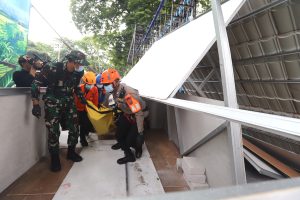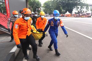Dalam simulasi tersebut, petugas menampilkan berbagai skenario penanganan bencana, mulai dari proses evakuasi korban, penanganan medis darurat, hingga distribusi logistik di lokasi terdampak.