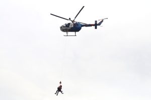 Petugas gabungan dari Polri, TNI, BPBD, dan relawan melaksanakan simulasi Siaga Tanggap Bencana Polda Jawa Barat 2025, Rabu (5/11/2025). (foto: eci/pasjabar)