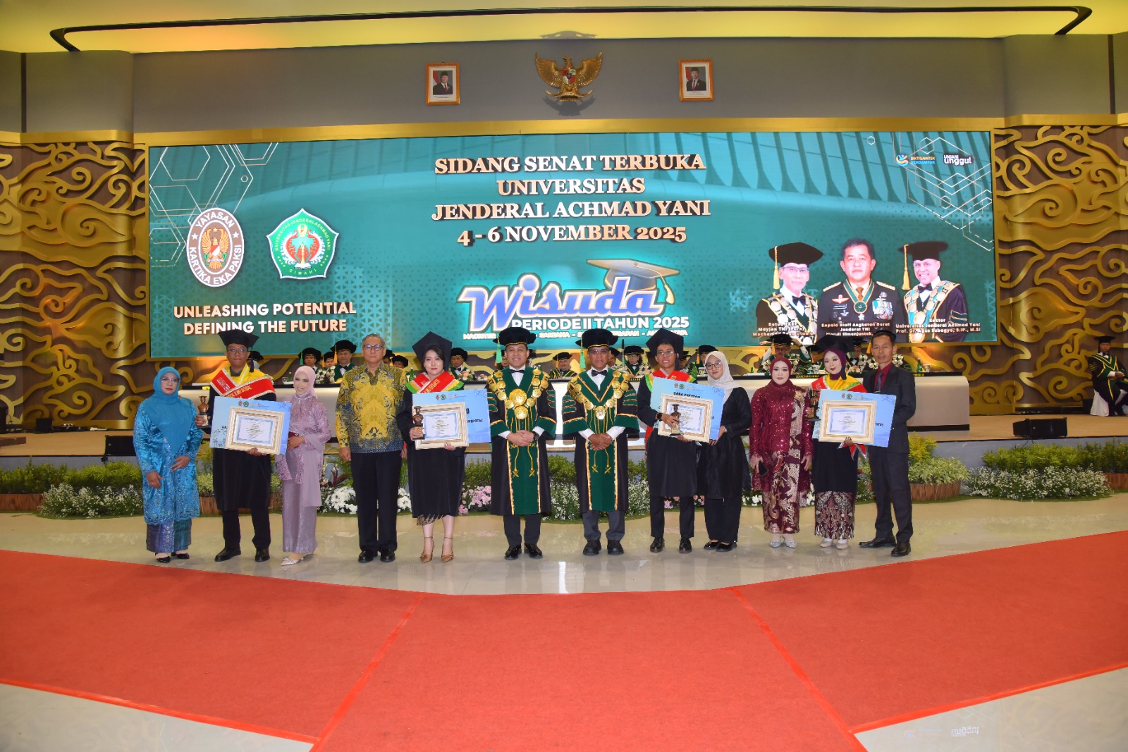 Rektor Unjani Prof. Dr. Agus Subagyo, S.IP., M.Si., menyampaikan tiga pesan bagi lulusan: menjaga nilai-nilai almamater—disiplin, loyal, dan santun; tidak melupakan almamater; serta membantu sesama alumni yang tengah mencari pekerjaan.
