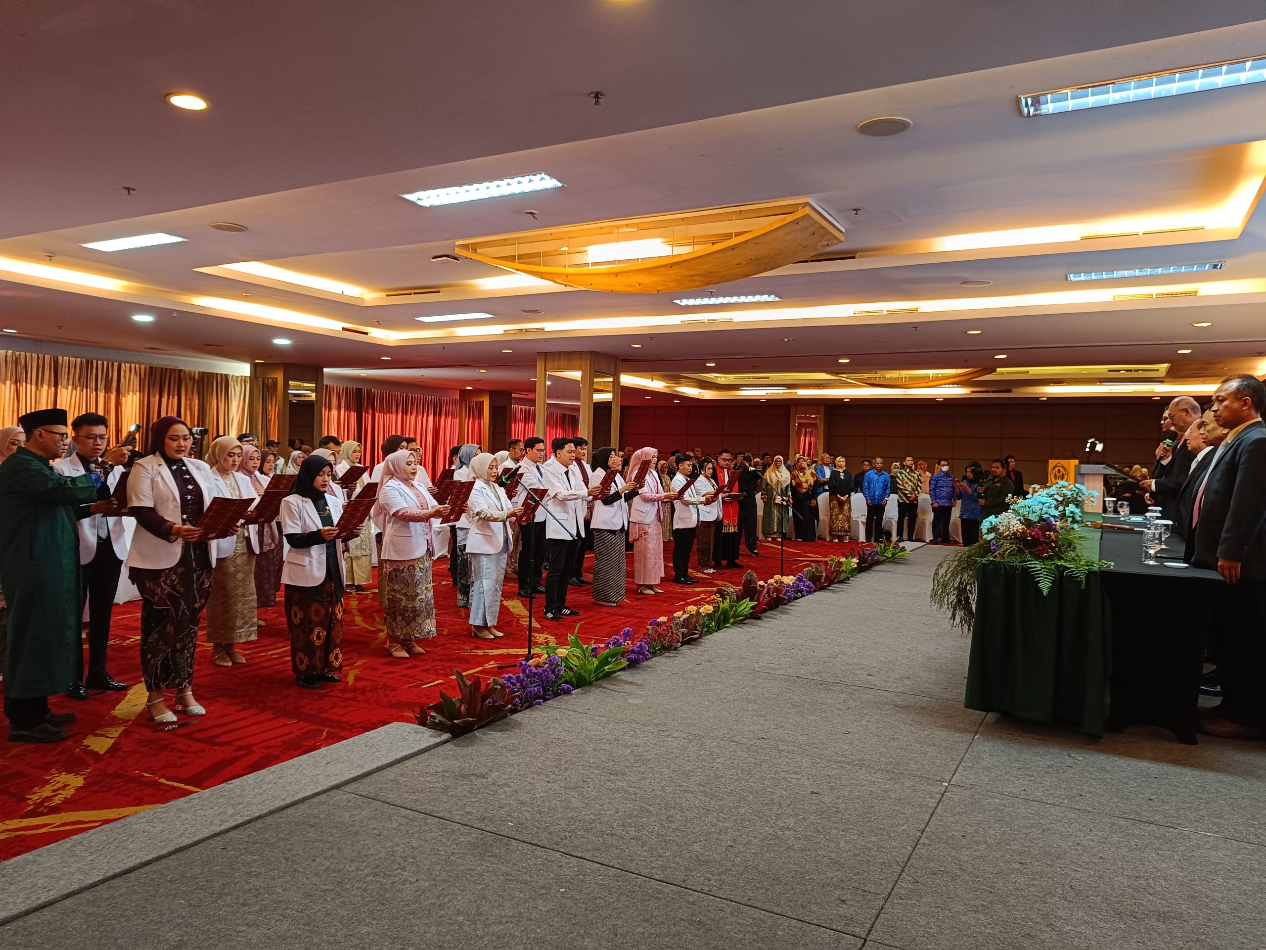 Sebanyak 32 dokter tersebut pun mengikuti Prosesi Sumpah Profesi Dokter Gelombang I Tahun Akademik 2025–2026 digelar penuh khidmat di Hotel Tjokro, Jalan Cihampelas, Bandung, Senin (10/11/2025).