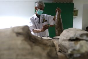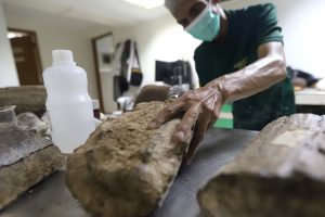 Petugas Museum Geologi Bandung mulai melakukan proses preparasi fosil yang ditemukan di Kabupaten Nganjuk, Jawa Timur. (foto: eci/pasjabar)