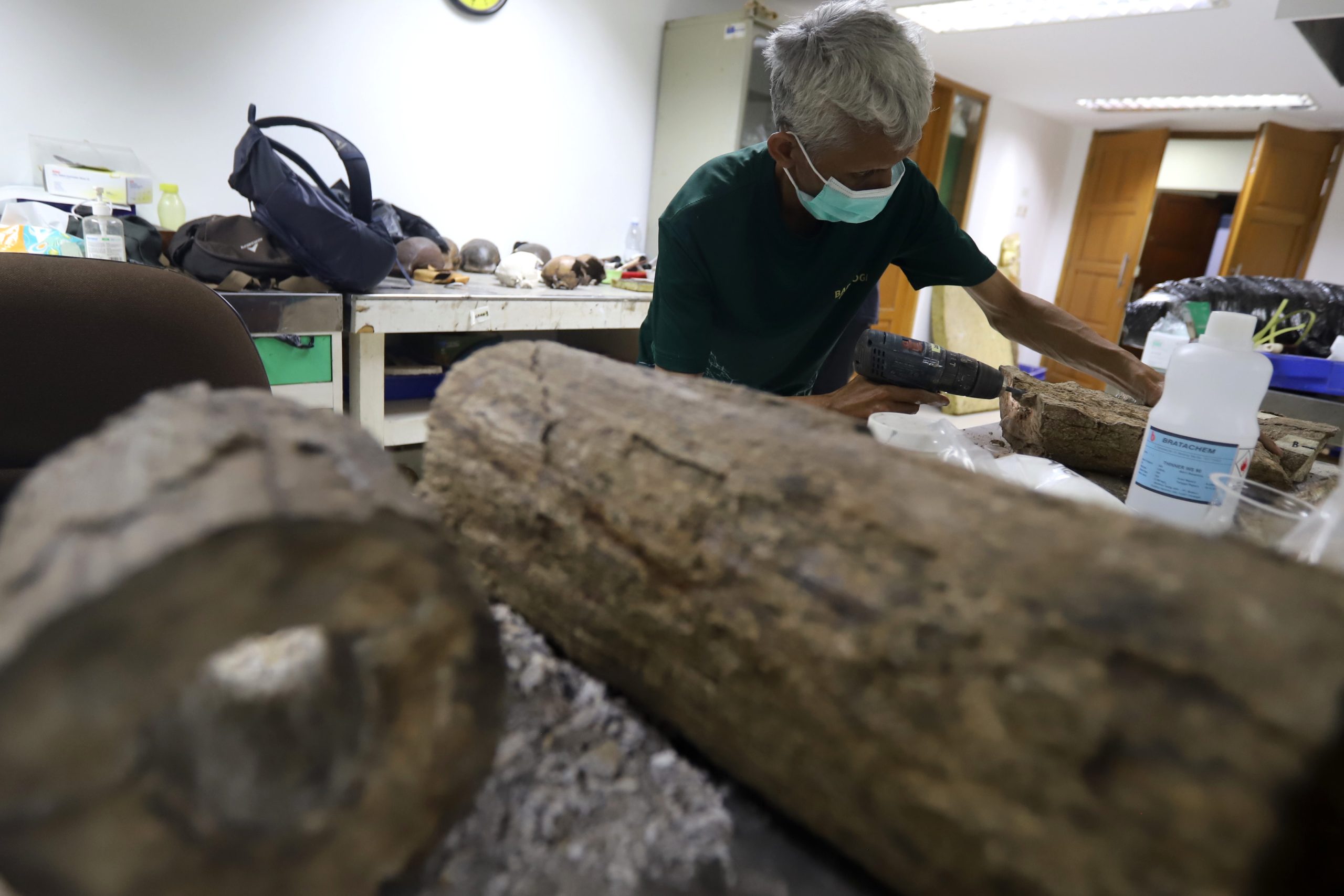 Petugas Museum Geologi Bandung mulai melakukan proses preparasi fosil yang ditemukan di Kabupaten Nganjuk, Jawa Timur. (foto: eci/pasjabar)