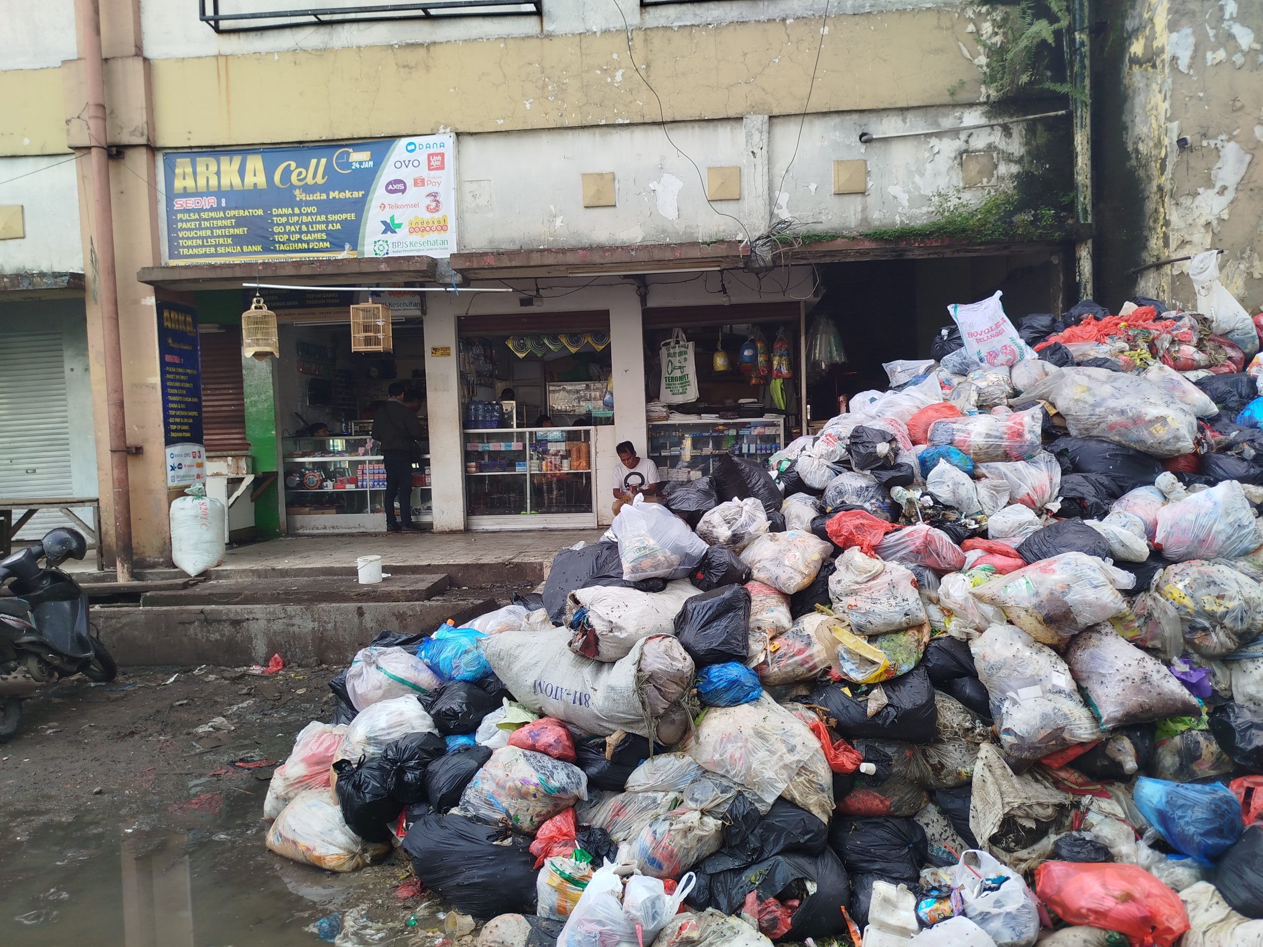 “Sampah di sini sudah hampir tiga bulan tidak diangkut. Pembeli pindah ke pasar lain karena bau dan banyak lalat. Penghasilan kami turun hampir 70 persen karena kios tertutup sampah,” ujarnya.