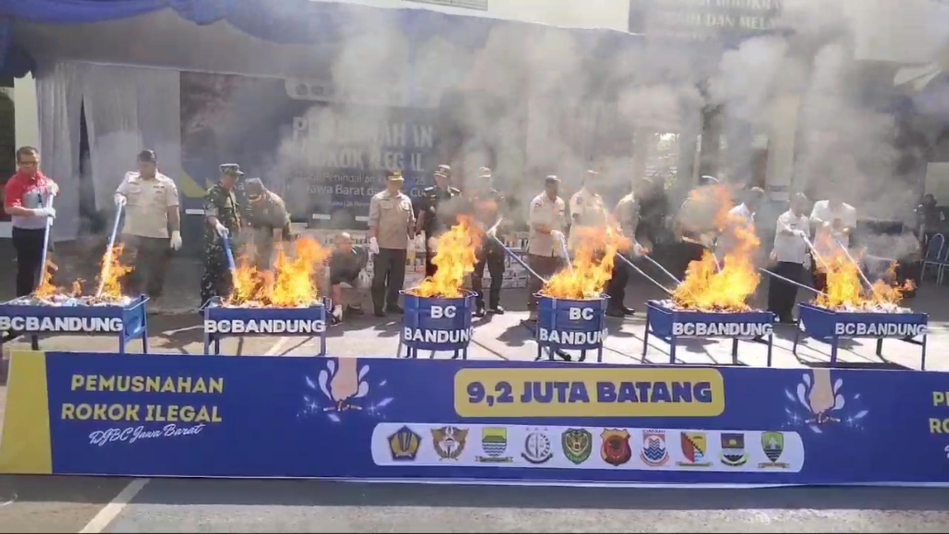 Ribuan karton rokok ilegal diangkut menggunakan dua unit truk toronton menuju lokasi pemusnahan utama di Narogong, Kabupaten Bogor. Sebagian lainnya dimusnahkan secara simbolis melalui pembakaran di kantor Bea Cukai Bandung.