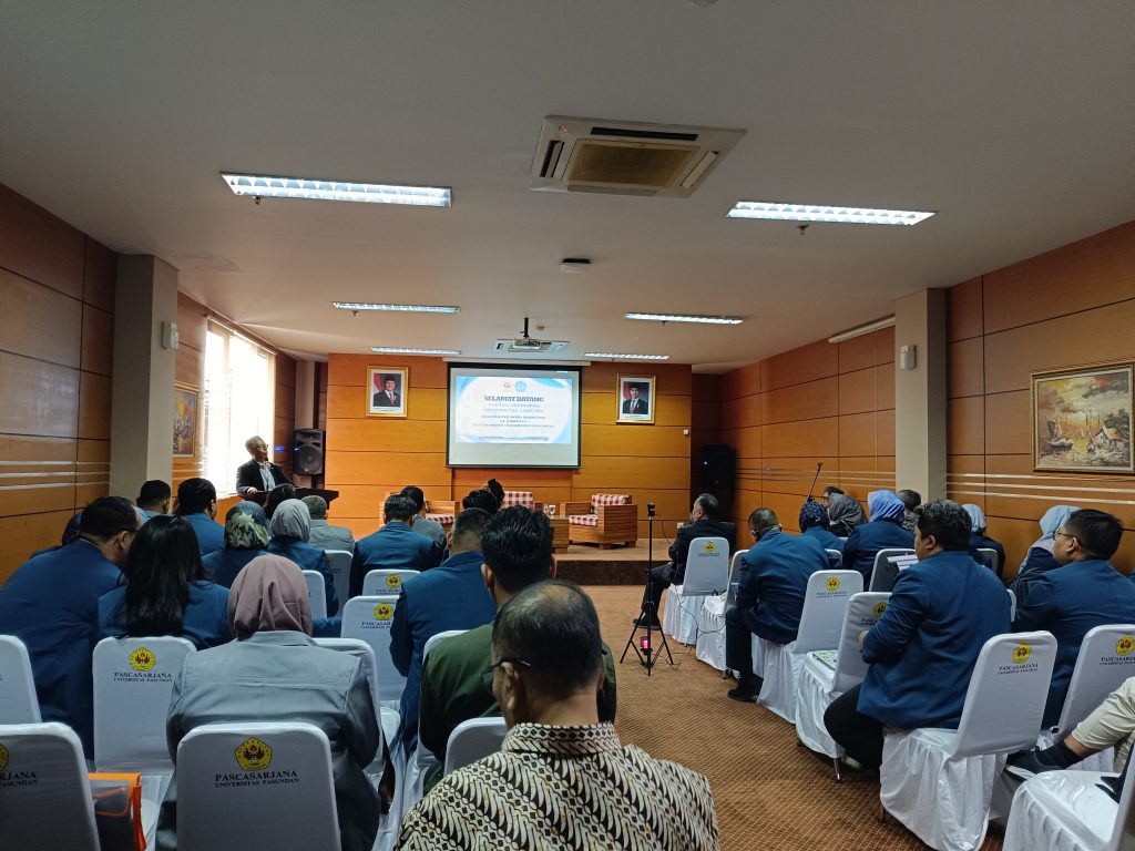 Wakil Direktur I Bidang Akademik Pascasarjana Unpas, Prof. Dr. H. Yaya Mulyana Abdul Azis, M.Si, menyampaikan bahwa kunjungan ini merupakan bagian dari penjajagan kerja sama Program Doktor Pendidikan Universitas Negeri Lampung dengan Pascasarjana Unpas.