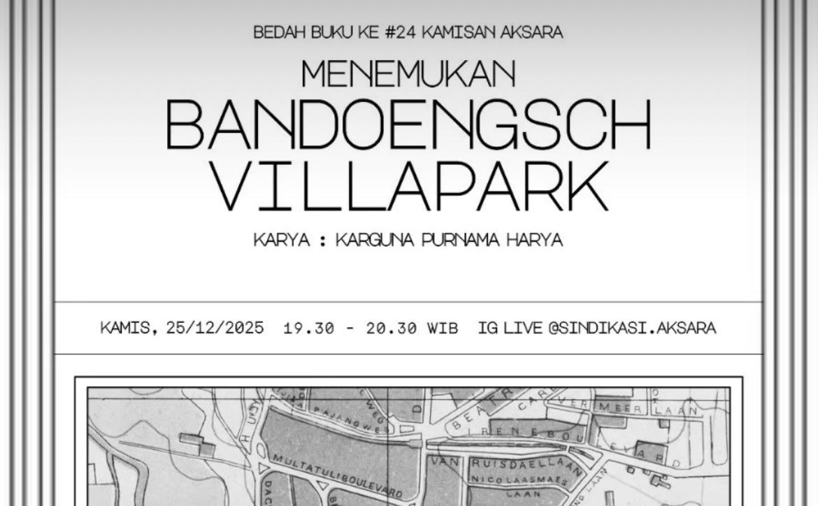 Melalui diskusi ini, Kamisan Aksara mengajak publik untuk menyelami pertanyaan-pertanyaan mendasar seputar Bandoengsch Villapark: apakah proyek tersebut benar-benar pernah dibangun atau hanya berhenti sebagai rencana di atas kertas, serta kemungkinan keberadaan jejak-jejaknya dalam lanskap Bandung hari ini. Diskusi akan menghadirkan penulis buku, Karguna Purnama Harya, sebagai narasumber, dengan Indra Wardhana sebagai host.