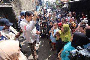 Menteri Perumahan dan Kawasan Permukiman, Maruarar Sirait (tengah), berbincang dengan warga saat meninjau program Gotong Royong Renovasi Rumah Merah Putih di Jalan Cibuntu Selatan, Kecamatan Bandung Kulon, Kota Bandung, Jumat (13/2/2026). (foto: eci/pasjabar)