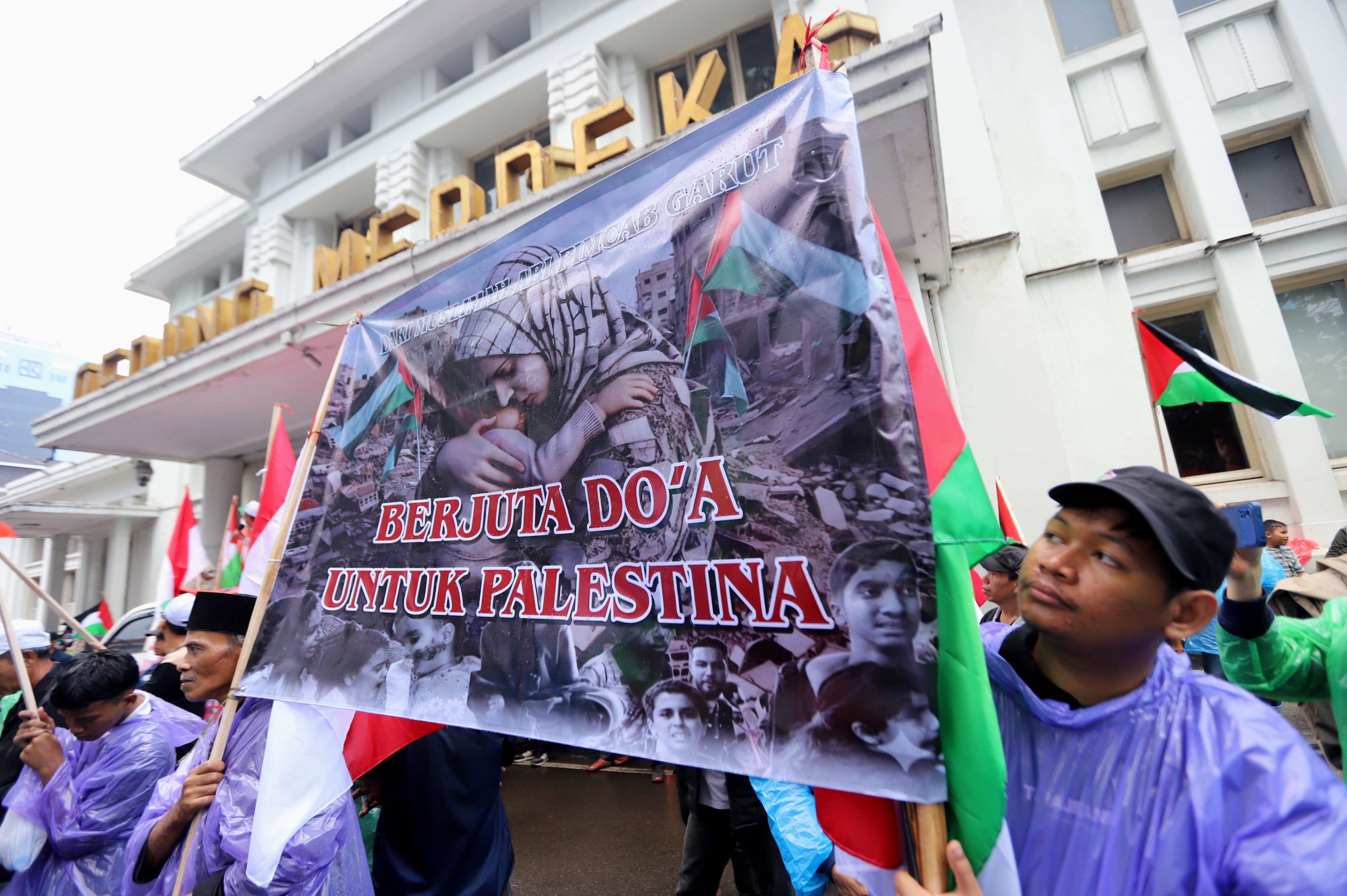 “Kegiatan ini merupakan pengingat bagi kita semua dan para pemangku kebijakan bahwa Indonesia memiliki hutang sejarah dan moral untuk menentang segala bentuk penjajahan,” ujar salah satu orator di hadapan massa.