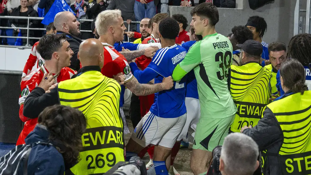 Ketegangan memuncak segera setelah peluit akhir dibunyikan oleh wasit Joao Pinheiro. Penyerang Strasbourg, Martial Godo, memicu amarah kubu tamu dengan berlari ke arah tribun suporter Mainz dan menggantungkan jerseynya di tiang bendera sudut sebagai bentuk selebrasi provokatif.