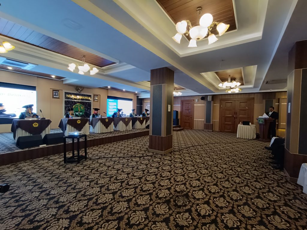 Sidang terbuka dipimpin oleh Ketua Sidang Prof. Dr. H. Bambang Heru P., M.S yang juga merupakan Direktur Pascasarjana Unpas, dengan penguji terdiri dari: Prof. Dr. H.M. Didi Turmudzi, M.SI, Dr. Deddy Hernawan, S.H., M.Hum, Dr. Hj. Tuti Rastuti, S.H., M.H, dan Promotor: Dr. Siti Rodiah, S.H., M.H, serta Co-Promotor: Dr. Hj. Utari Dewi Fatimah, S.H., M.Hum.