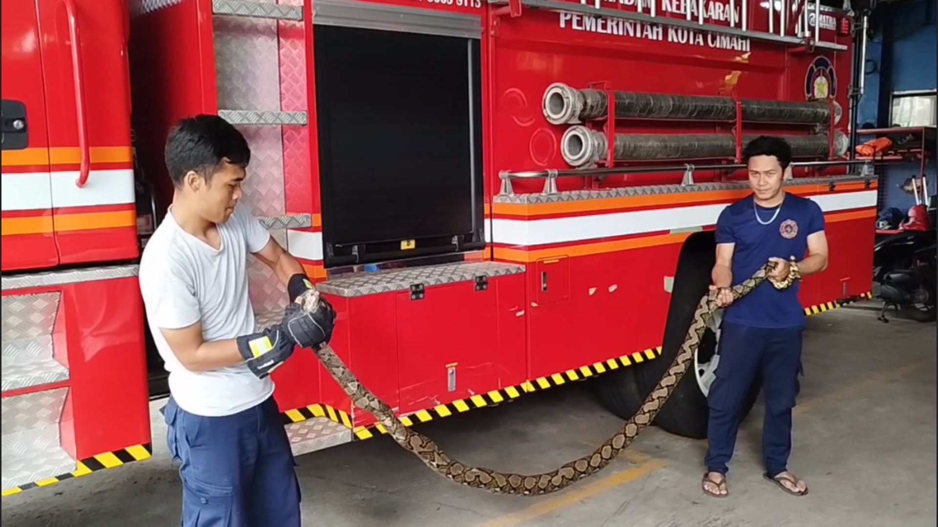 Tim Damkar Kota Cimahi yang tiba di lokasi harus menghadapi berbagai risiko dalam proses penyelamatan. Selain ancaman listrik bertegangan tinggi, petugas juga harus mewaspadai potensi lilitan dari ular sanca tersebut.