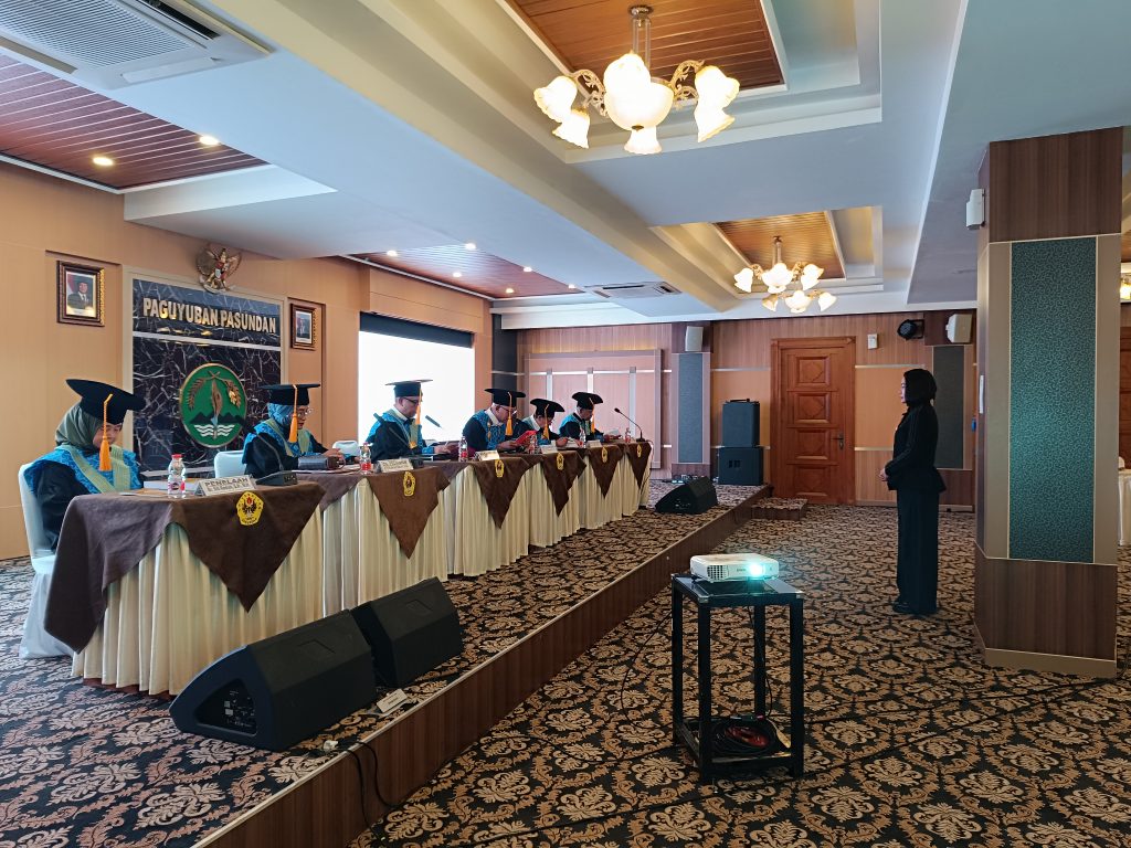 Sidang terbuka tersebut dilaksanakan di Aula Pascasarjana Unpas, Lantai 5, Jalan Sumatera No. 41 Bandung, pada Selasa (28/4/2026).